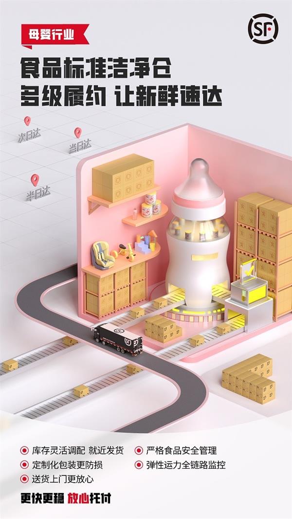 母婴产物的商家存正在全渠道运营下库存分离、资金压力大、办事程度纷歧等问题。为此,顺丰打制全链数智物流处理方案,通过“B&C仓配+一盘点智能履约”的模式,实现线上订单智能推单、快递产物智能选择、订单智能拆合,无效均衡成本取速度,降低企业库存,提高资金周转率。